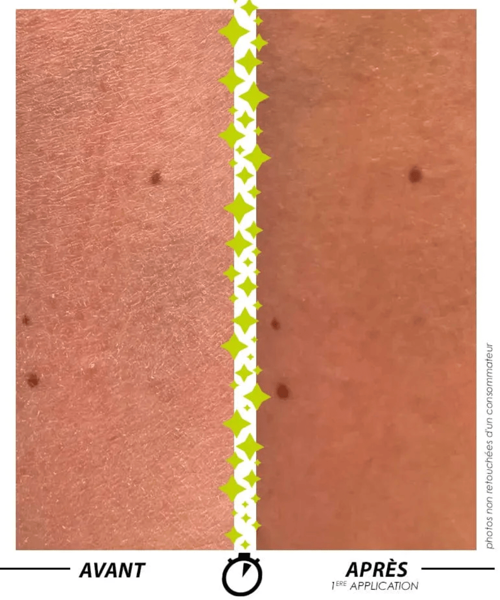 Résultats visibles & rapides : Nourrit et hydrate, gomme sans grain et raffermit la peau.