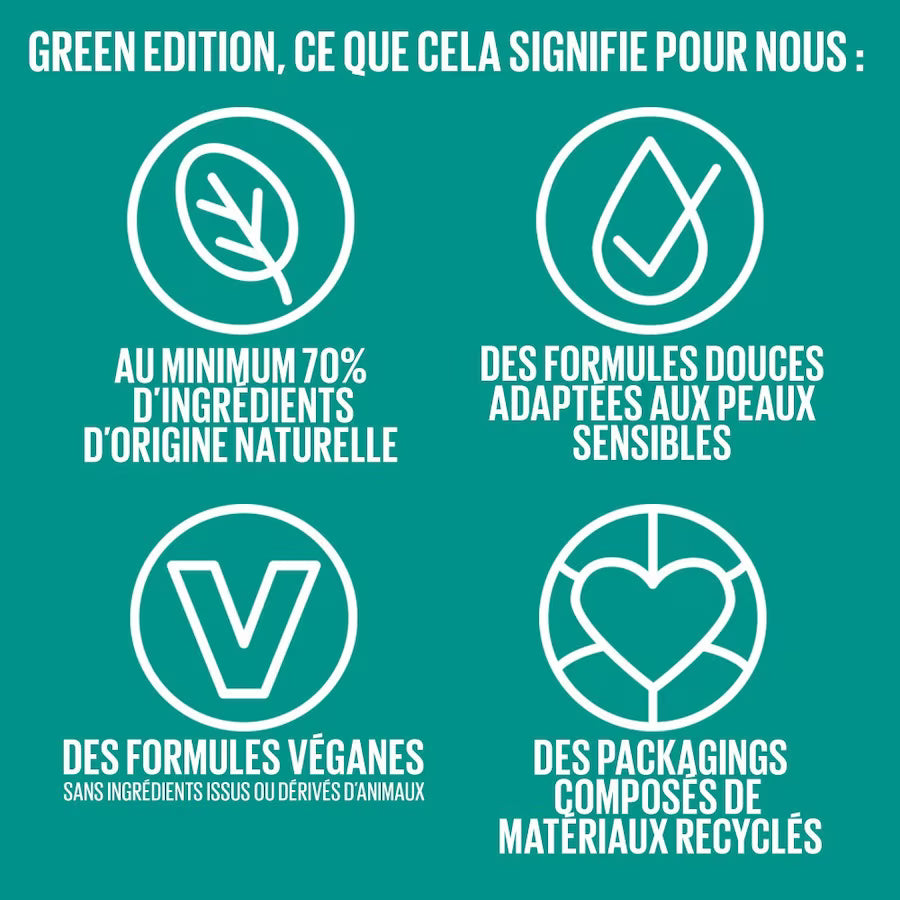 GREEN EDITION, c'est une gamme de maquillage haute performance, engagée pour un monde meilleur, grâce à nos 4 pilliers :