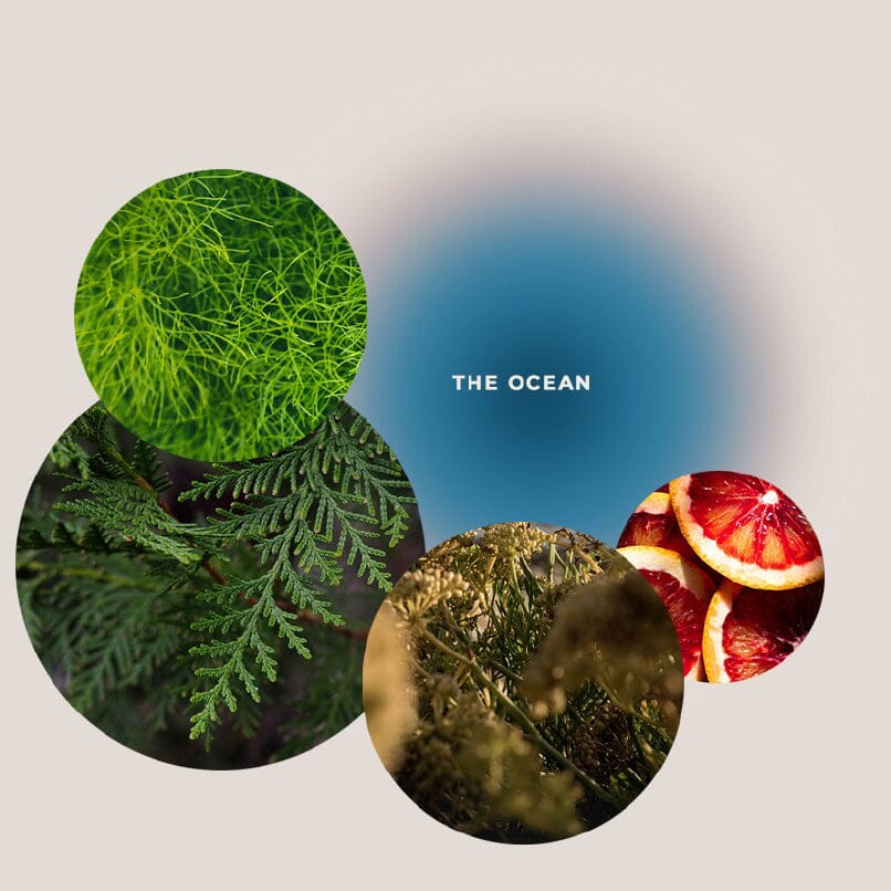 Bain de mer - Offre à ta peau la fraîcheur tonifiante de l’océan. Le fenouil de mer, le cyprès, le fenouil amer et l'orange sanguine vivifient et rafraîchissent ton corps et ton esprit.