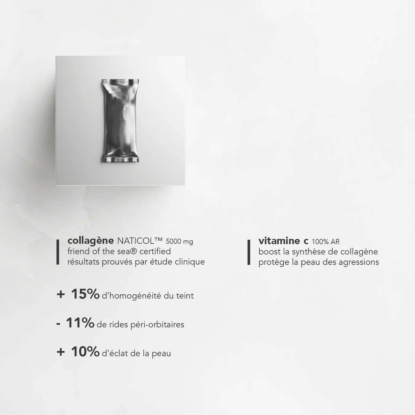 Naticol® : oligopeptides de collagène 5 g (poisson) - arôme naturel de vanille bourbon - vitamine C (acide ascorbique) 80mg 100% AR